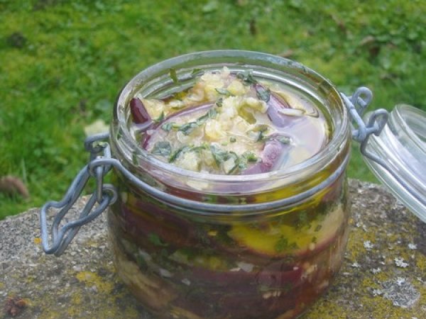 Poser les aubergines frites dans un plat si on les déguste le lendemain ou dans le bocal chaud en alternant avec de la fleur de sel et de feuilles de menthe. Tranchez-les en rondelles épaisses denv. Laisser dégorger au frais pendant 24 heures en retirant de temps en temps leau rejetée par les aubergines les sécher soigneusement.